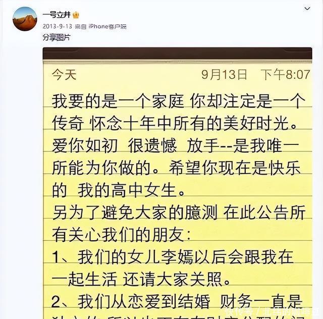 如此种种,终于让王菲对他彻底失望。 2013年,两人宣布离婚,结束了为期8年的婚姻生活。 王菲非常体面地说: “婚是我要离的,没有第三者,没有婆媳不和,不牵扯财务问题。不是悲情狗血剧,和平分手。换一种方式相处,对孩子来说我们仍是一家人。”